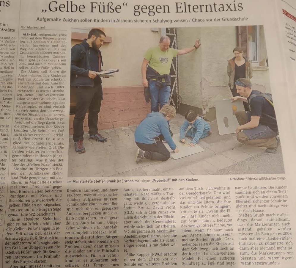 - ein großer Teil der Alsheimer Schulwege wurde mit gelben Füßen bemalt